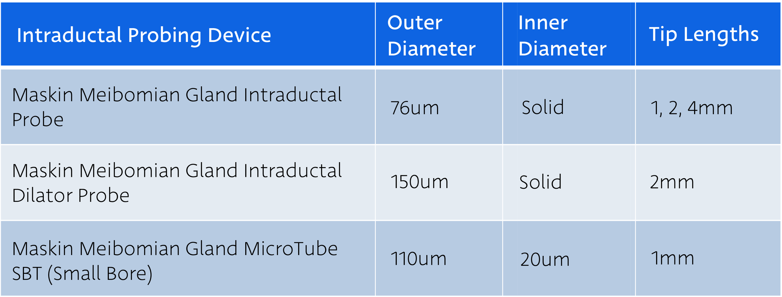 - 150um OD wire with a 2mm length for use on Meibomian glands.